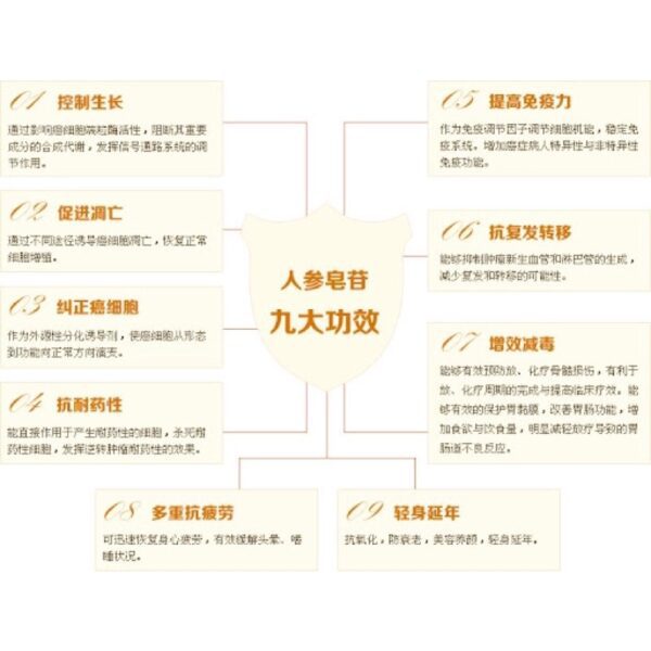 大补元气,强心益肺,健脾开胃,宁心安神,补虚劳,调节免疫系统,增强记忆力,延缓衰老