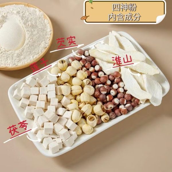 中医「脾胃论」说:「百病皆由脾胃衰而生」,对于肠道较弱者,如老年人、孩童、产妇、术后调养或病后康复期,食欲不好、营养吸收消化不良、腹泻等症状,四神粉是最佳膳贴,既滋养强壮又可补充营养.